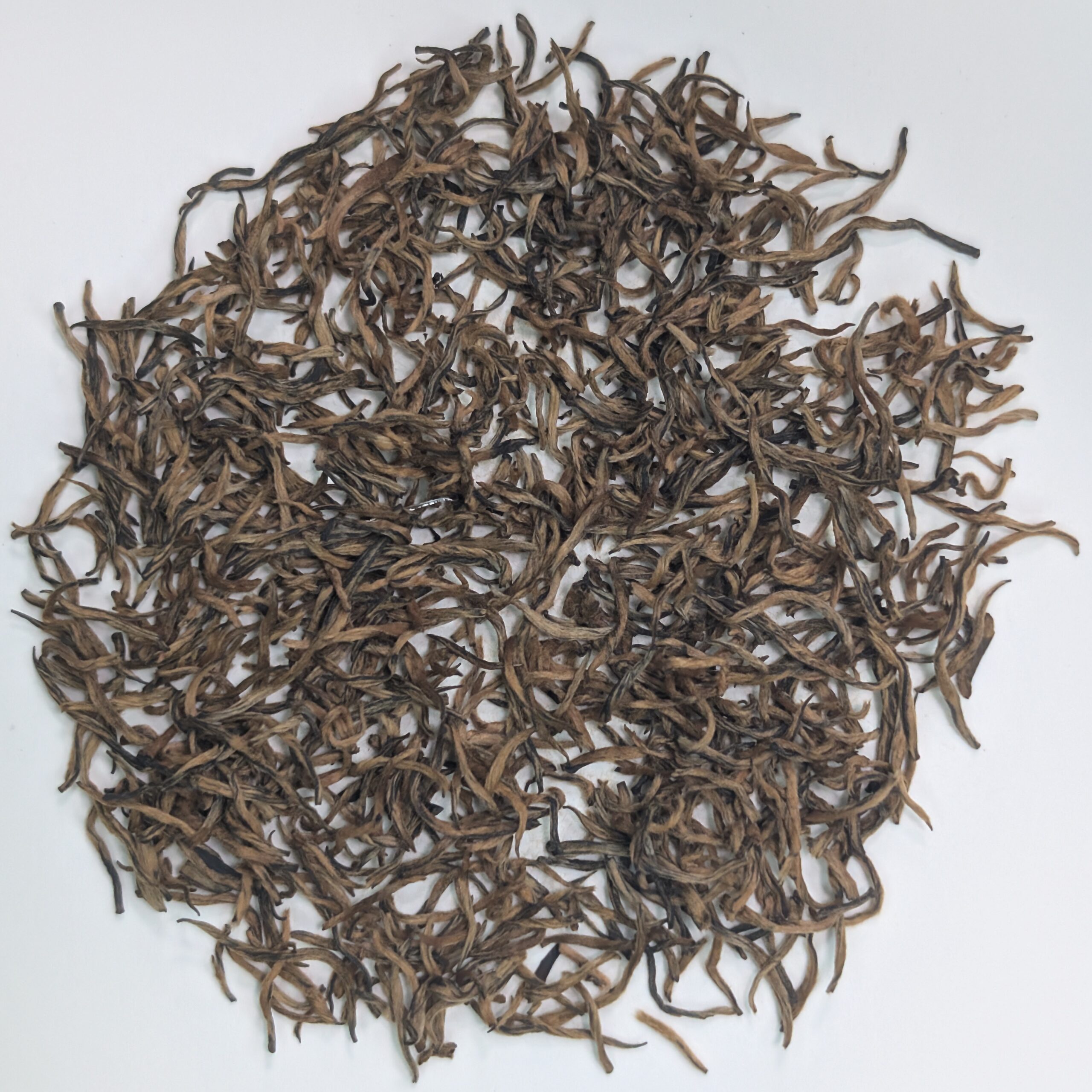 A “red” tea — named in China for the color of the steeped brew – the harvested leaves are oxidized and roasted.  The leaves are picked in early spring from bushes in the Wuyi Mountains in Fujian Province. Known for its light, fruity flavor, it is a staple in Chinese tea enthusiasts’ pantries.